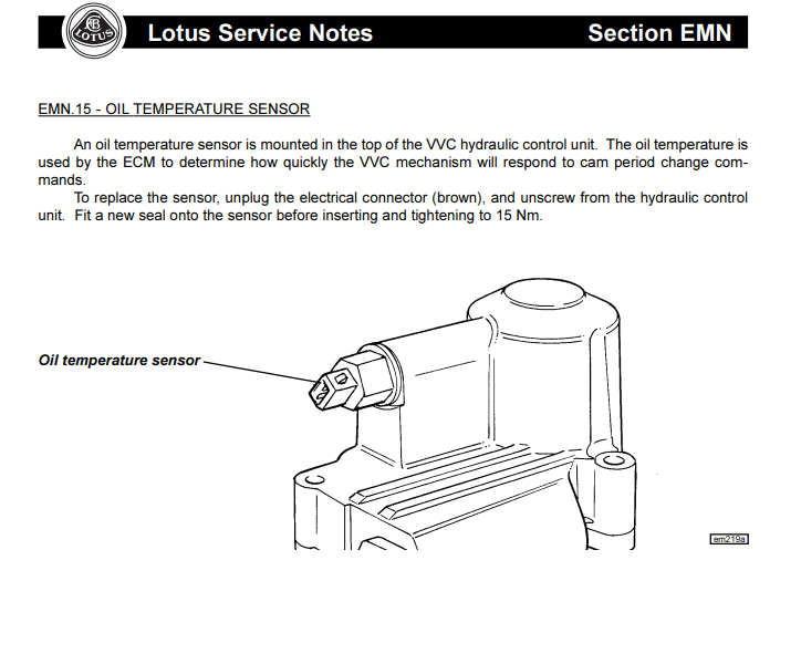 The temperature reading is used by the ECU to determine how quickly the VVC mechanism will respond to the cam period change commands that affect the Variable Valve Control.